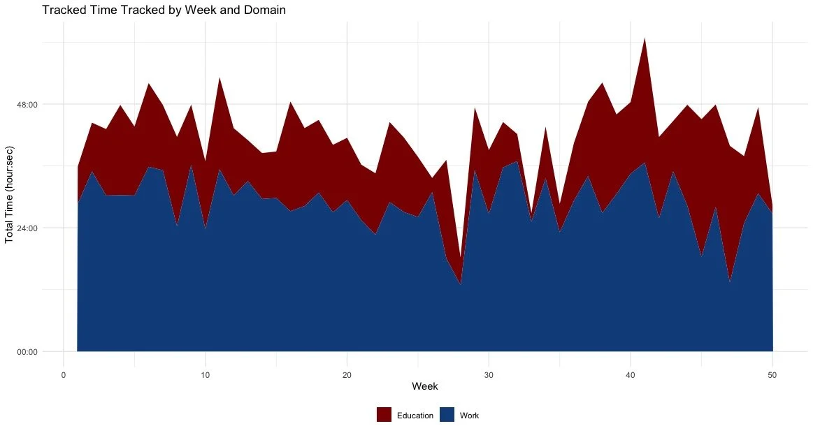 First of all, why did I collect all this data? I have some productivity geek tendencies and heard people discuss time tracking for some time on various podcasts. This year, I also started a Master’s program and wanted a tool to understand how much time I was spending at my computer. Throughout the year, I used this data to stop myself from working nonstop and to keep myself honest when I was feeling lazy.